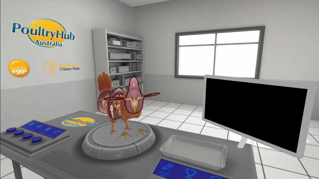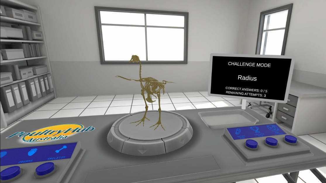 挑战模式通过让用户使用镊子从鸡肉中提取指定部分来测试知识,就像真正的解剖一样。 当用户将零件放在解剖托盘上时,系统会自动提供反馈。
