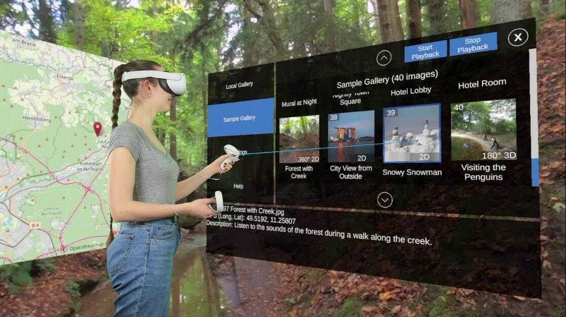 我们的应用程序还附带了来自世界各地的 40 张沉浸式示例照片,例如 德国(慕尼黑啤酒节和城堡)、日本和绝佳的海滩位置。 图像格式为 VR180 3D、VR360 单声道和一些常规 2D 图像。