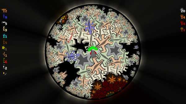扭曲是世界上独特,不寻常的几何形状:它是在双曲线平面上进行的少数游戏之一。目睹一个由六边形和七边形组成的网格,这些直线看起来是平行的,但是它们却发散并且永不交叉,三角形的角度加起来小于180度,实际上几乎不可能两次到达同一位置世界的无限大小(距离起点仅700步,数以百计的位置),以及当您返回时世界似乎如何旋转。所有这些对于游戏而言都很重要。该游戏的灵感来自流氓风格(尽管以极简主义的方式),埃舍尔(M. C. Escher)的作品以及益智游戏,如《死亡的致命房间》(Deadly Rooms of Death)。