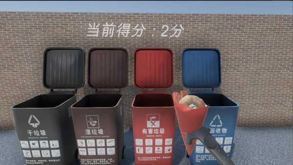本游戏中包含丰富的垃圾种类,如干垃圾,湿垃圾,可回收垃圾和有害垃圾四种,每种垃圾对应数个实体物品,满足当前市场上既有垃圾分类的全部操作。通过本程序的体验,可以让自己对现实生活中的垃圾更加敏感,让垃圾投放更加方便快捷。场景体验分为两种,一种是PC端,通过点击来投放垃圾;另一种是通过VR虚拟现实体验,让人真正的融入到真实的场景环境当中,更加逼真的模拟投放垃圾的一些相关操作。在体验时,会根据你的投放而打分,用来鼓励正确的投放。
